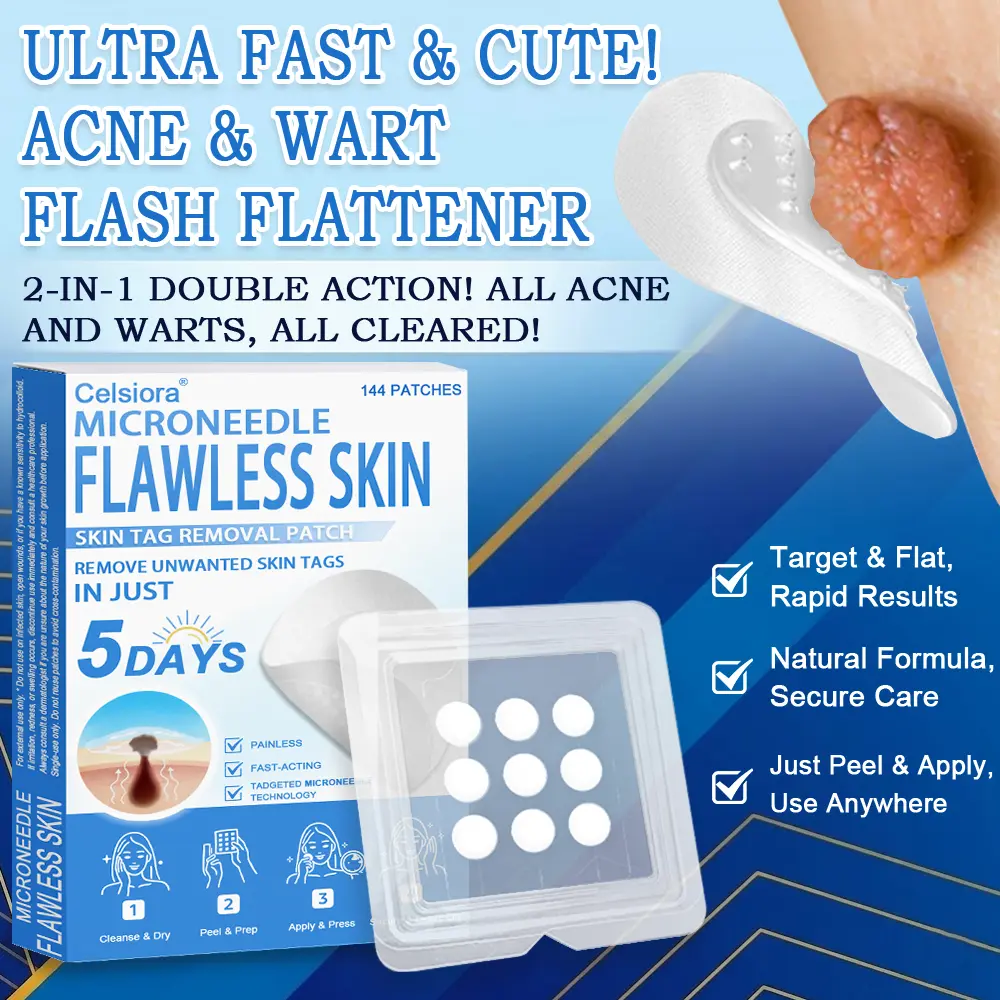 That’s why we created Celsiora® Microneedle Star Patch 2-in-1 | Acne, Flat Warts & Skin Tags Remover — a gentle, plant-powered formula that softens raised bumps, breaks down deep keratin buildup, and brightens stubborn dark spots, all without harsh acids, stinging, peeling, or irritation.