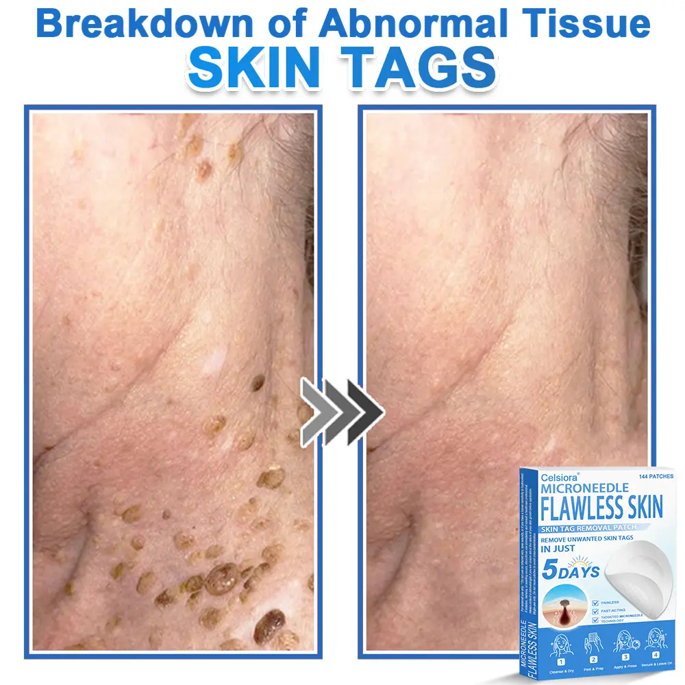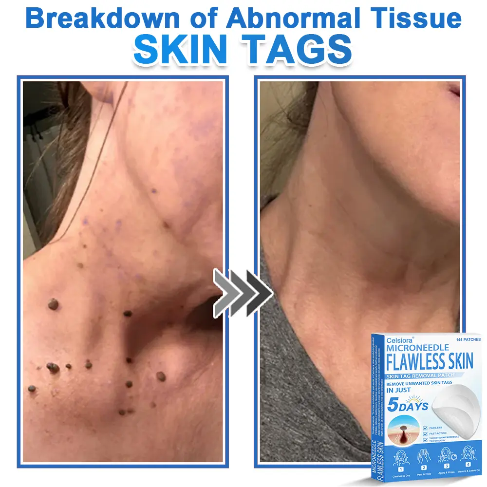The Celsiora® MicroNeedle Botanic Skin Tag Removal Patchis an organic micro-needle patch that delivers botanicalingredients deep into the skin to remove skin tags, moles,and warts. Just one application can cause unwanted skintags to fall off within five days, making it an effectivetreatment. It is highly recommended by pharmacists and dermatologists worldwide for its safety, reliability, andnon-prescription convenience.