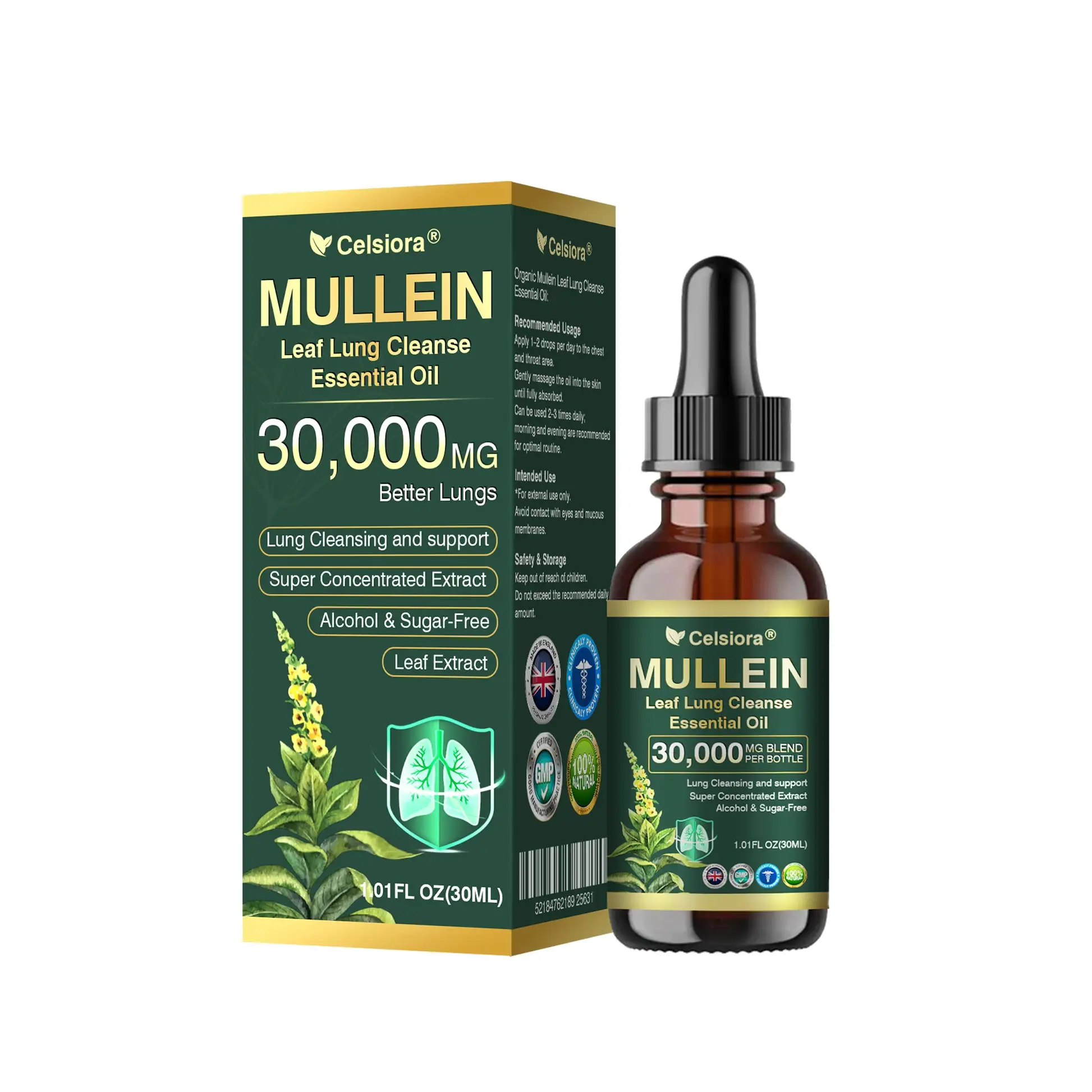 Celsioraยฎ Organic Mullein Leaf Lung Cleanse Essential Oil๏ผ1/2/4/6/10 JARS๏ผ